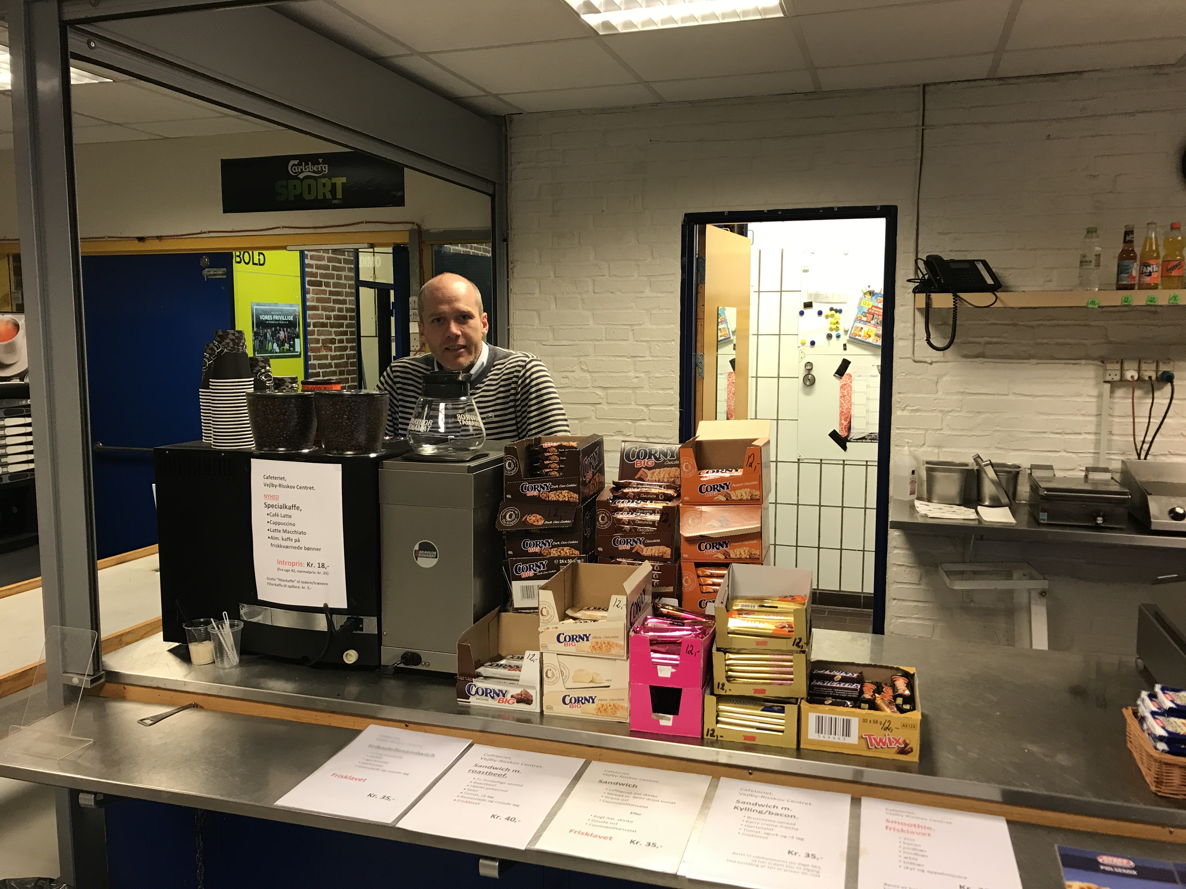 Morten Bjerre Justesen er den nye forpagter af Cafeteriet og har fra start sat sit eget præg på cafeteriet. Der er bl.a. blevet investeret i en ny maskine, som kan lave caffe latté, cappuccino, machiato og hvad de forskellige espressobasserede drikkevarer hedder. Hvad baggrunden for at overtage forpagtningen af cafeteriet i Vejlby Risskov Centret er, har vi spurgt hovedpersonen om: