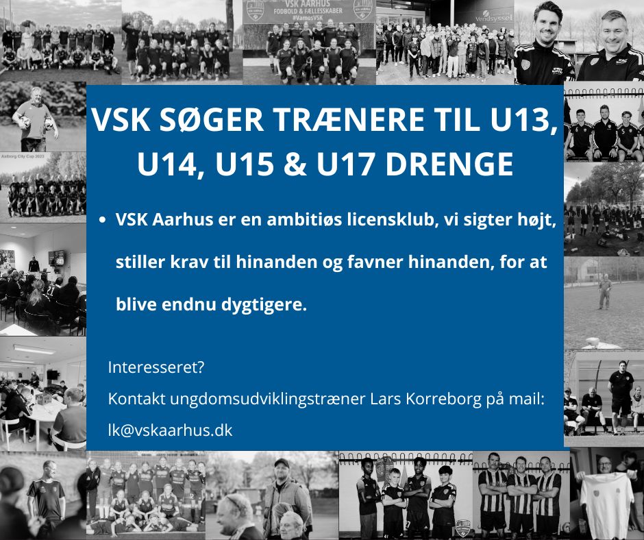 I VSK Aarhus søger vi engagerede trænere, der er klar til at indgå i et trænerteam med ambitiøse trænere, hvor der er mulighed for god sparring og udvikling 🙏